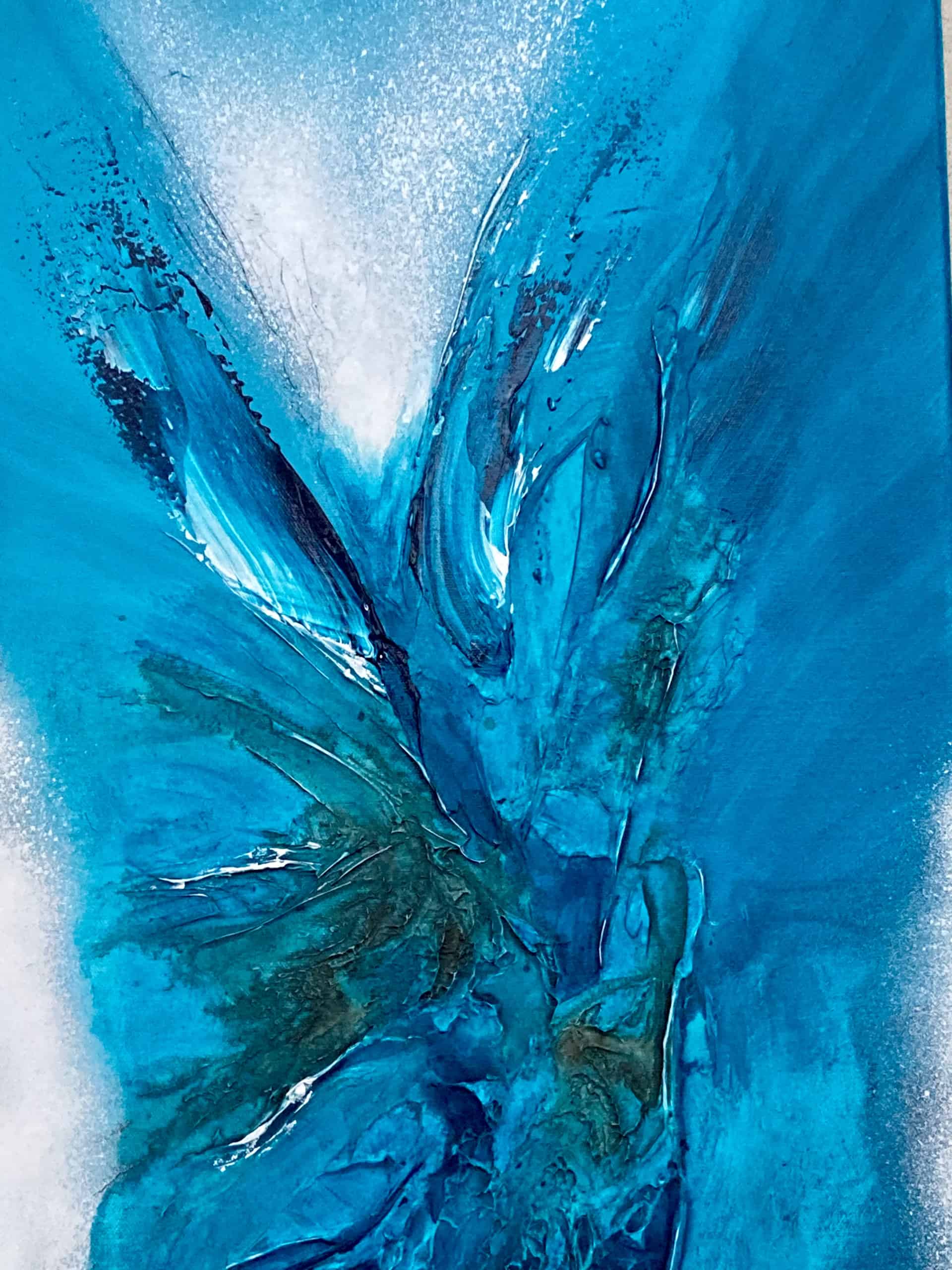 Couleurs: Bleu, turquoise, vert, marron et blanc.